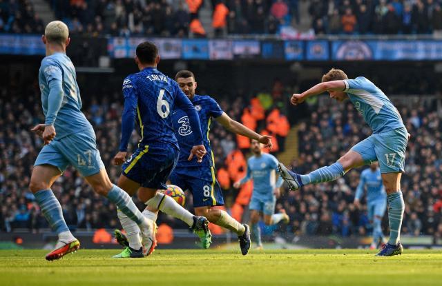 就当这场激烈有余,精彩不足的双蓝会接近白卷时,德布劳内改变了一切。从前场左侧一路横带到禁区前沿的他,做了全场最“自私”的一次决定,但瞄准蒂亚戈·席尔瓦与科瓦契奇防区唯一路线的射门,让全场都格外活跃的凯帕鞭长莫及。这是德布劳内在英超第5次对切尔西破门,蓝军不幸与阿森纳并列,成为“丁丁”破门次数最多的英超球队;在切尔西外放球员弑主排行榜上,德布劳内也毫无悬念地跃居榜首。这也是比利时中场第21次禁区外破门,追平阿圭罗并列队史榜首,破纪录显然不算遥远。